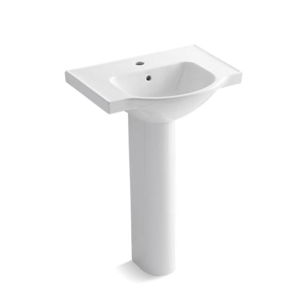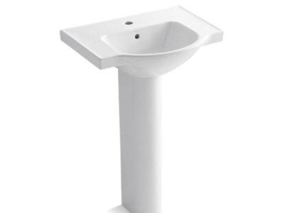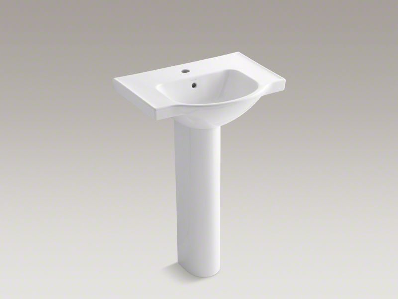 The KOHLER® Veer pedestal sink combines crisp, sophisticated style with a functional design that's perfect for smaller bathrooms. The slender column rectangular pedestal bathroom sink takes up minimal space, while the basin offers an ample deck on both sides to hold toiletries and grooming items.