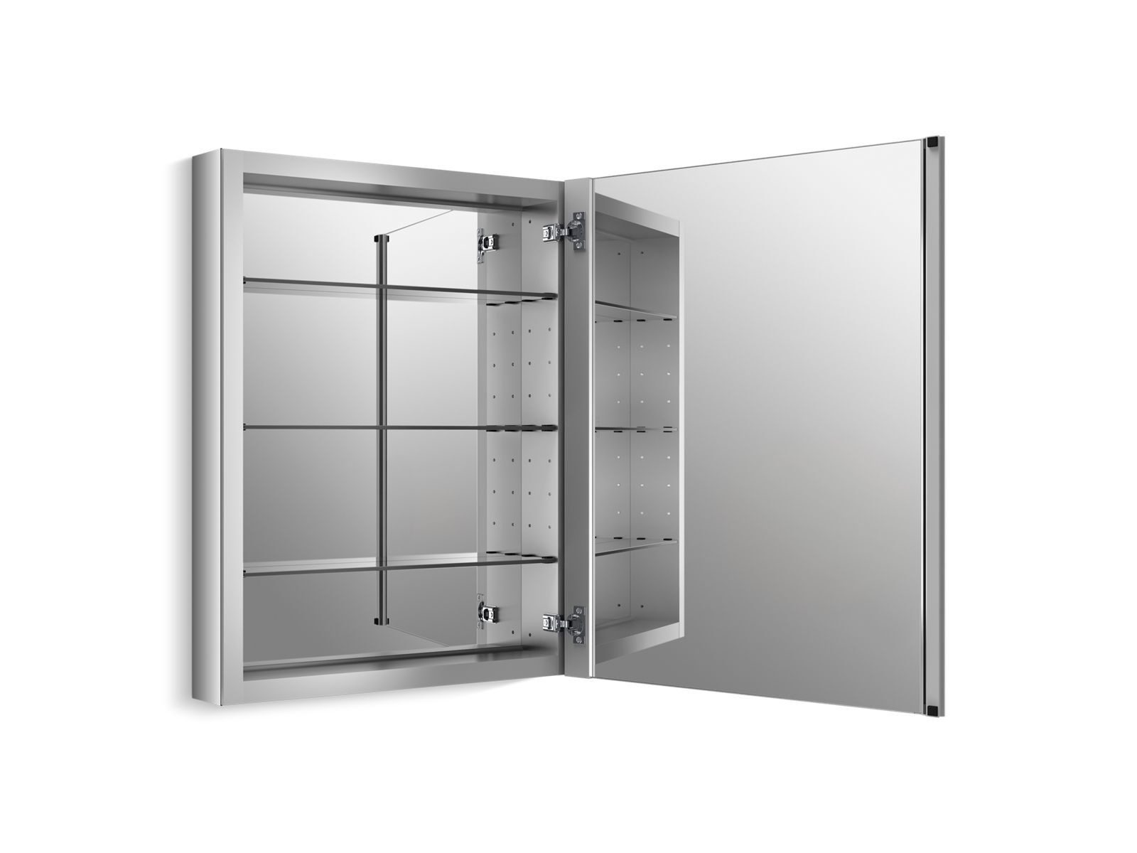 The KOHLER® Verdera 24" x 30" mirrored surface-mount/recessed rectangular medicine cabinet combines an elegant fit and finish with quick, easy installation. The door and interior are fully mirrored, and three adjustable glass shelves offer flexible storage of toiletries. At Kohler, we make it our business to help you create the bathroom space of your dreams.