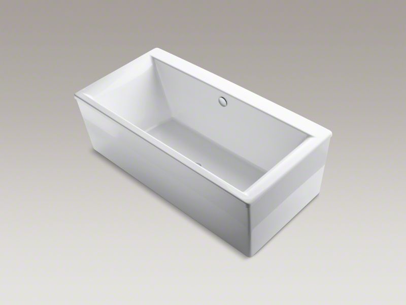 Kohler® Bathtub, Stargaze™ Collection, Rectangle Shape, 72 in Length, 36 in Width, 25-3/4 in Height, 90 gal Water, Center Drain Location, 50 x 25-1/2 in Bottom Basin/61 x 27-1/2 in Top Basin Bathing Well, 17 in Soaking Depth, 17 in Overflow Height, Freestanding Mounting, Acrylic, White