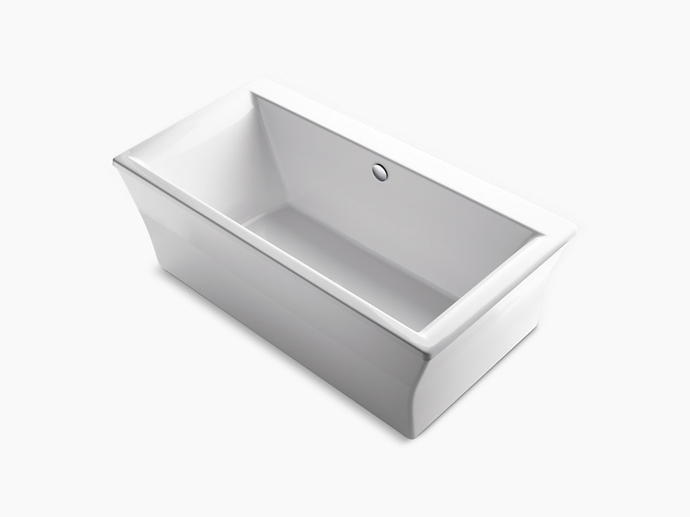 Kohler® Bathtub, Stargaze™ Collection, Rectangle Shape, 72 in Length, 36 in Width, 25-3/4 in Height, 90 gal Water, Center Drain Location, 50 x 24-1/2 in Bottom Basin/61 x 27-1/2 in Top Basin Bathing Well, 17 in Soaking Depth, 17 in Overflow Height, Freestanding Mounting, Acrylic, White