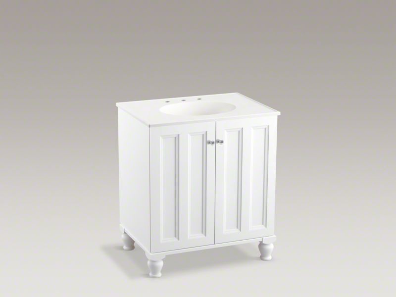 Breathtaking design meets unrivaled craftsmanship in the KOHLER(R) Tailored vanity collection. No detail was overlooked in the meticulous crafting of this collection, from the premium hardwoods to the specially designed hardware and vanity tops, all available in an array of finishes to create your own look. This Damask vanity reflects the rich details found in colonial American architecture. Complete your vanity with a coordinating top, hardware, and accessories from the collection.