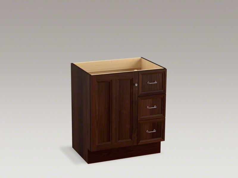 Breathtaking design meets unrivaled craftsmanship in the KOHLER(R) Tailored vanity collection. No detail was overlooked in the meticulous crafting of this collection, from the premium hardwoods to the specially designed hardware and vanity tops, all available in an array of finishes to create your own look. This Damask vanity reflects the rich details found in colonial American architecture. Complete your vanity with a coordinating top, hardware, and accessories from the collection.