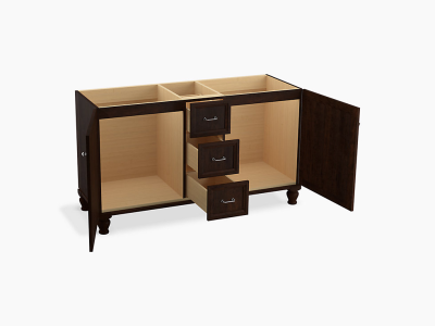 Breathtaking design meets unrivaled craftsmanship in the KOHLER® Tailored vanity collection. No detail was overlooked in the meticulous crafting of this collection, from the premium hardwoods to the specially designed hardware and vanity tops, all available in an array of finishes to create your own look. This Damask® vanity cabinet reflects the rich details found in colonial American architecture. Complete your bathroom vanity with a coordinating top, hardware, and accessories from the collection.
