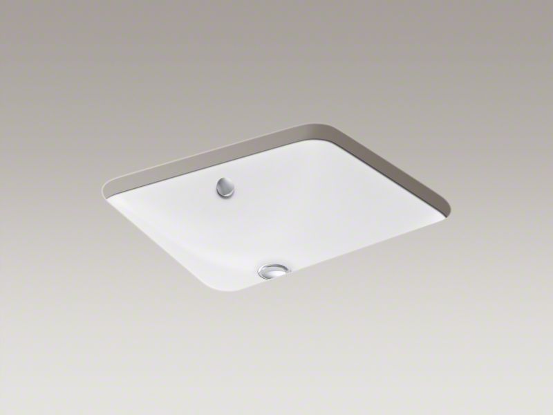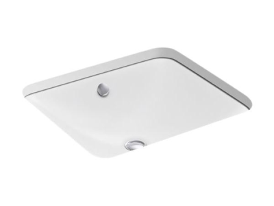 Kohler®, 5400-0, Bathroom Sink, Rectangular Shape, 17-1/2 in L x 14-3/4 in W Bowl, 1-5/8 in Drain Opening, 1 Basins, 18-9/16 in W x 15-3/4 in D x 6-5/16 in H Overall, Drop-In/Undermount Mounting, Enameled Cast Iron, White, ADA Compliance: Yes