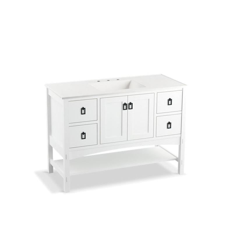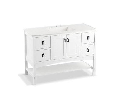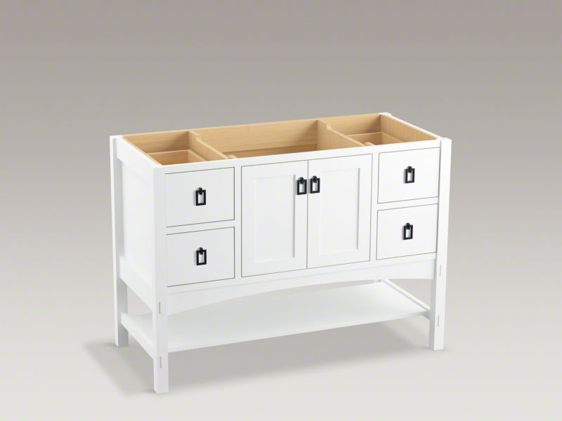 Kohler® Bathroom Vanity Cabinet, Marabou®, 34-1/2 in Overall Height, 48 in Overall Width, 21-7/8 in Overall Depth, Floor Mount, Solid Wood/Veneer Cabinet, Linen White Cabinet, 2 Doors, 4 Drawers, 1 Shelve