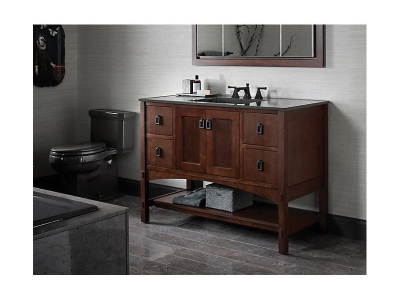 Breathtaking design meets unrivaled craftsmanship in the Kohler® Tailored vanity collection. No detail was overlooked in the meticulous crafting of this collection, from the premium hardwoods to the specially designed hardware and vanity tops, all available in an array of finishes to create your own look. This Marabou® vanity cabinet brims with country charm for a timeless look that is a true classic of American design. Complete your bathroom vanity with a coordinating top, hardware, and accessories from the collection.