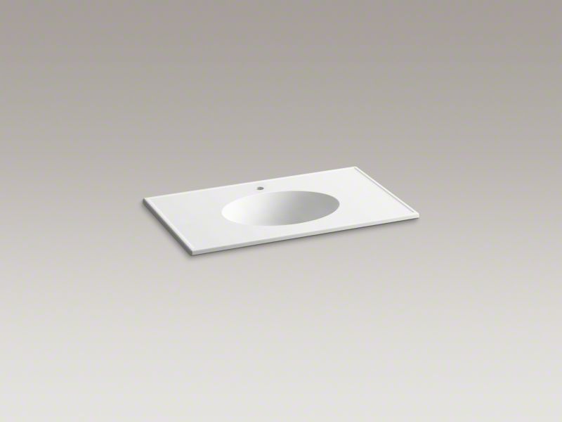This integrated vanity top and sink offers a beautifully coordinated and easy design solution to reflect your unique bathroom style. With one-piece, seamless construction to simplify cleaning, Ceramic/Impressions vanity-top sinks are available in an array of dimensional color finishes that evoke a rich, spa-like feeling. This top/sink pairs perfectly with the industry-standard vanity sizes of the KOHLER(R) Tailored vanity collection, and the new dimensional finishes are color matched to existing KOHLER vitreous colors.