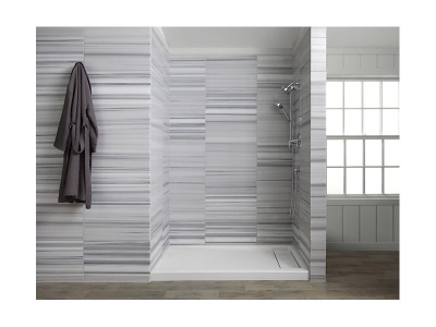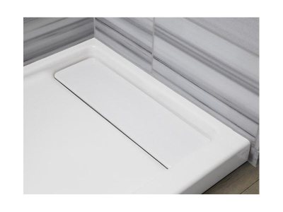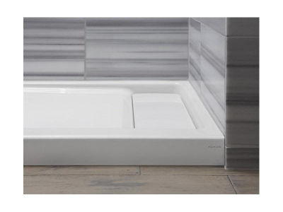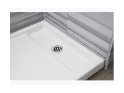 The KOHLER® Bellwether 60" x 32" KOHLER Enameled Cast Iron shower base features KOHLER® enameled cast iron construction for unmatched durability and ease of maintenance. The left centered drain is ideally designed for new construction. Add a removable cover over the recessed drain for a finished look. Safeguard® slip-resistant surface enhances safety.