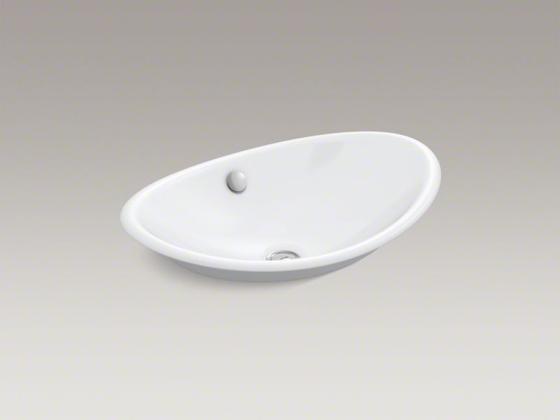 Kohler® Vessel Bathroom Sink, Iron Plains™, Oval, 19-3/4 in L x 13-1/4 in W Bowl, 1-3/4 in Drain Opening, 1 Basin, 20-3/4 in W x 14-1/4 in D x 6-5/8 in H, Above-Counter Mount, Enameled Cast Iron, White, ADA Compliance (Yes/No): Yes