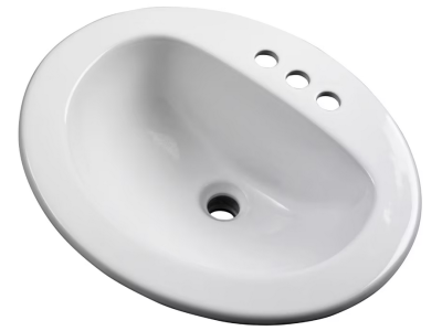 The oval self-rimming sink from our Maxwell(R) collection measures 21" x 18" and features a large faucet deck and wide raised 3/4" lip. It offers a concealed front overflow, is ADA compliant and is drilled for a 4" faucet configuration.