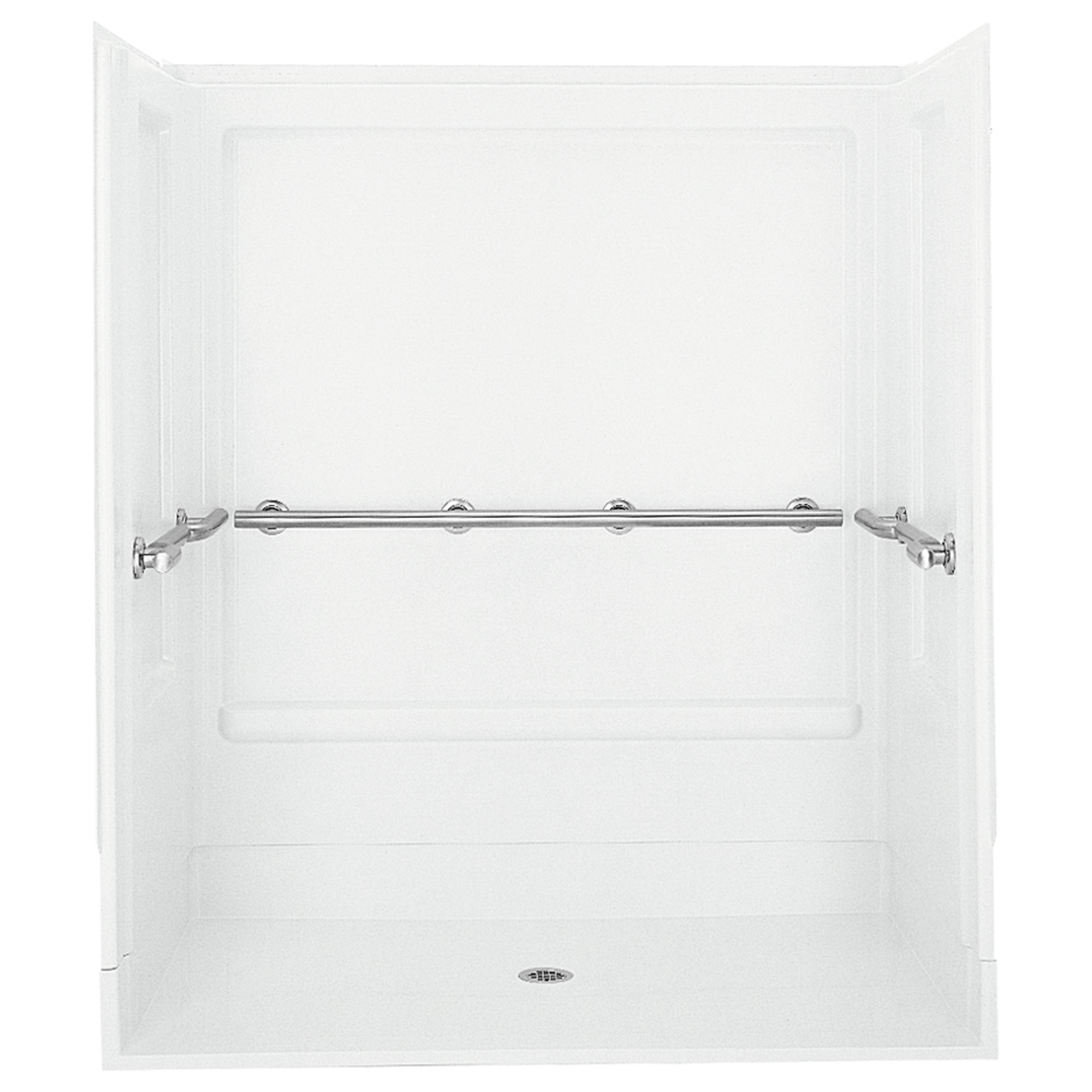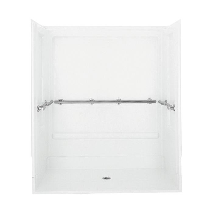 Sterling® Roll-In Shower, 3-Piece, Series: 6206, 63-1/2 in Length, 40-5/8 in Width, 73-1/4 in Height, 3 Wall Panels, Center Drain, Alcove Mount, Solid Vikrell®, White