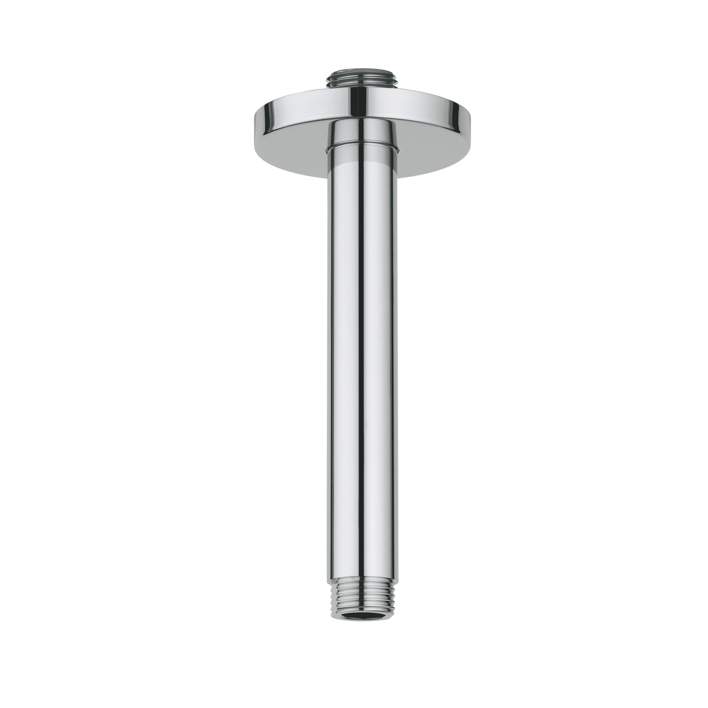 GROHE Ceiling Shower Arm, Rainshower® Collection, 5-3/4 in Arm Length, Specifications: 1/2 in NPT, Brass, Polished Chrome, 2-9/16 in Dia Dimension, Import