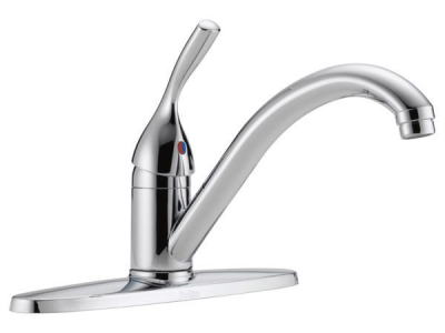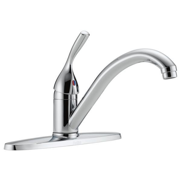 DELTA® Kitchen Faucet, Classic Collection, 1.8 gpm Flow Rate, 8 in Center Distance, Swivel Spout, 5 in Spout Reach, 10 in Spout Height, Lever Handle, 1 Handles, Side Spray(Y/N): No, 3 Faucet Holes, 1-3/8 to 1/8 in Faucet Hole, 3/8 in Connection, Compression Connection, 1 in Maximum Deck Thickness, Deck Mounting, Euro-Motion DIAMOND™ Seal Valve, Metal, Polished Chrome