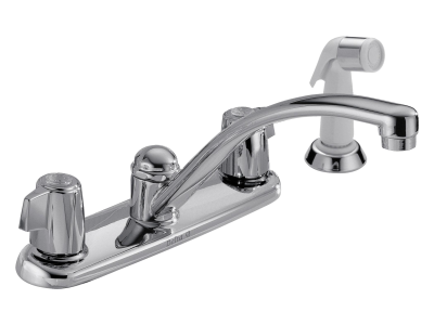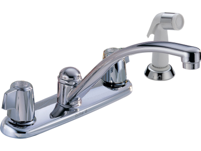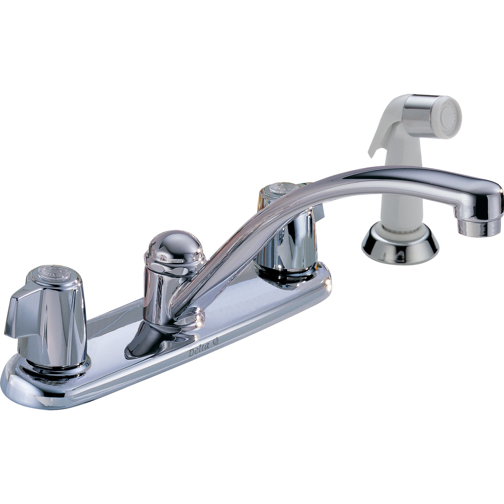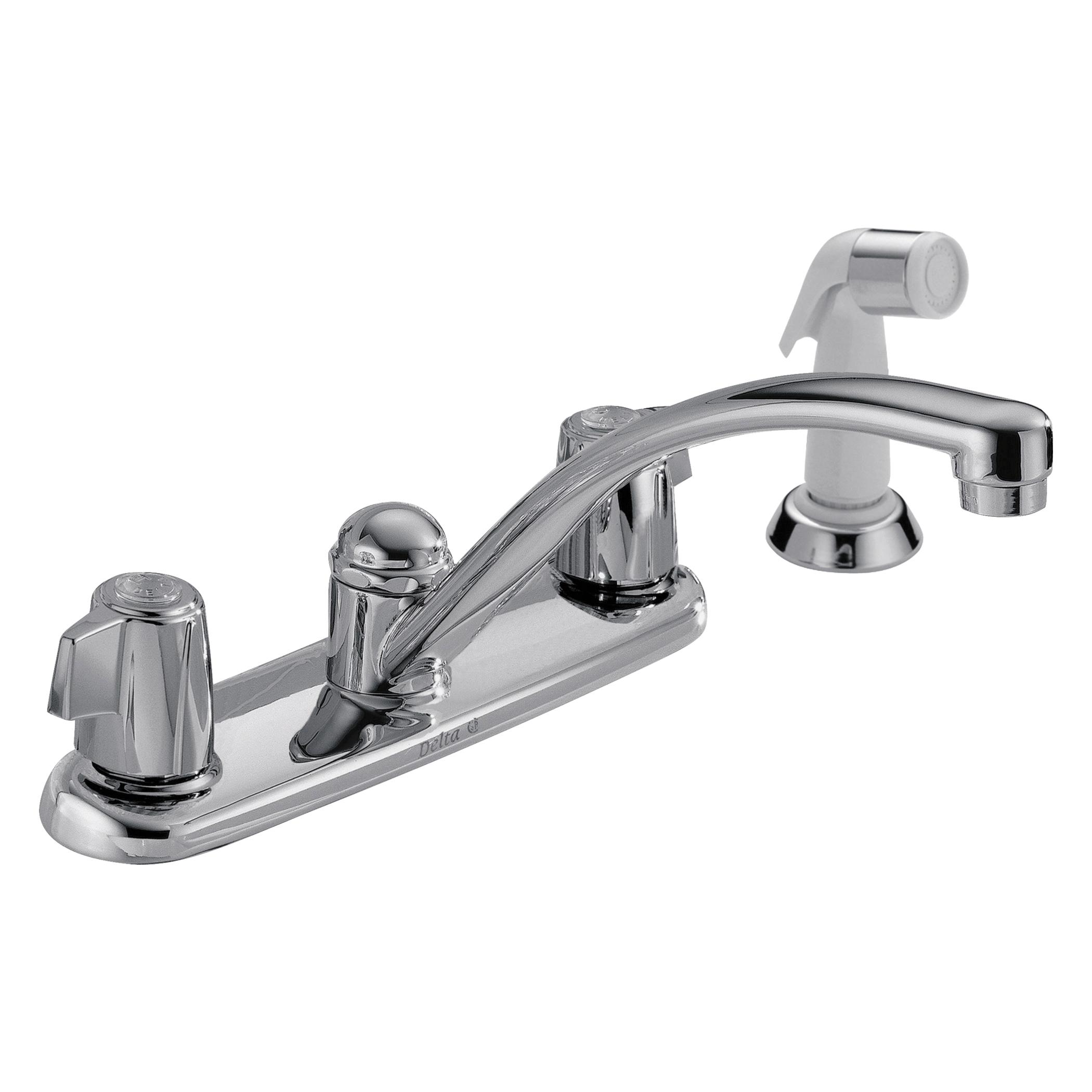 DELTA® 2400LF Kitchen Faucet, 1.8 gpm, 8 in Center, Swivel Spout, Chrome Plated, 2 Handles, Side Spray(Y/N): Yes, Commercial