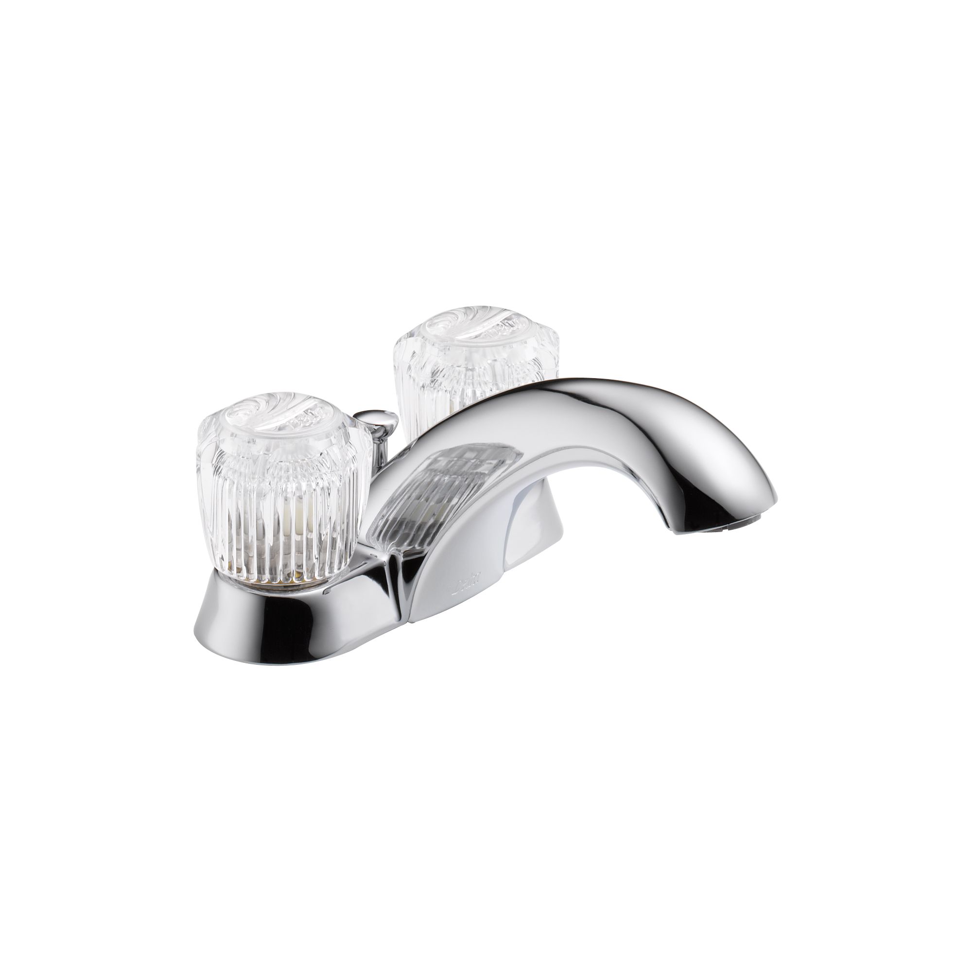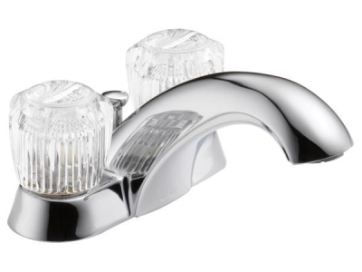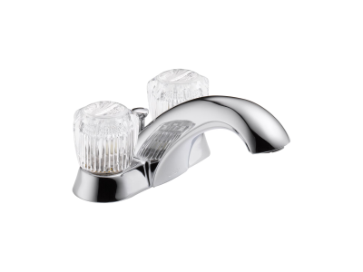 DELTA® Centerset Lavatory Faucet, Classic, 1.2 gpm, 4 in Center Distance, Rigid Spout, 5-1/4 in Spout Reach, 3-1/4 in Spout Height, Knob, 2 Handles, Metal Pop-Up Drain, 3 Faucet Holes, 1/2-14, NPSM, 1-3/8 in Maximum Deck Thickness, Deck Mount, Washerless Stem Valve/Cartridge, 6-1/4 in W x 3-1/4 in H, Solid Brass, Polished Chrome, Domestic