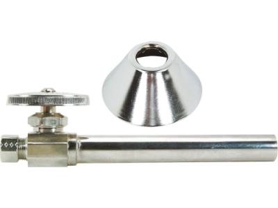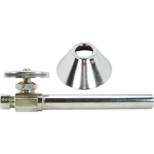 BrassCraft® 1/2 in Nominal C Inlet x 3/8 in OD Compression Outlet Multi-Turn Straight Valve with 5 in C Extension Tube and Bell Escutcheon controls water flow to household plumbing fixtures - faucets, toilets, dishwashers, icemakers, washing machines and more. The straight valve is most often used where the water pipe enters the room from the floor. With a few turns of the valve handle, you are able to stop the flow of water leading to the plumbing fixture, allowing for maintenance and repair without turning off water to the entire home.
