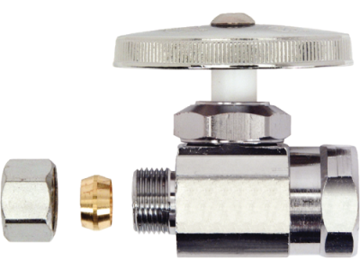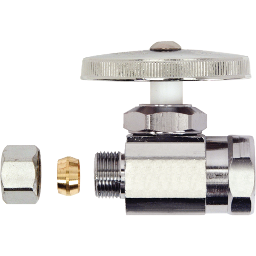 BrassCraft® OR12X C Multi-Turn Straight Stop, 1/2 x 3/8 in Nominal, FNPT x Compression, 125 psi, Brass Body, Polished Chrome, Domestic