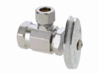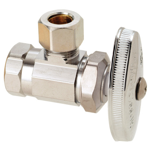BrassCraft® Angle Stop, Multi-Turn, Series: OR15X, 3/8 in Nominal, FNPT x Compression End Style, 125 psi Pressure, Media: Water, Brass Body, Brass/POM Trim, Rubber Bib, Packing Washer Softgoods, 40 to 140 deg F, 1.10 x 2.54 x 1.14 in Dimension, Polished Chrome, Domestic