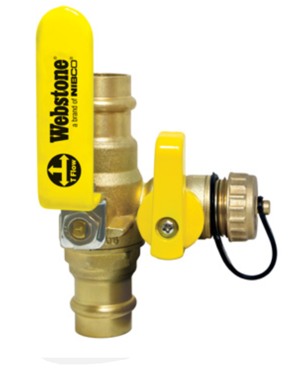 Nibco H-80614W Webstone Pro-Pal Lead Free Brass 1 inch Press x 1 inch Press Full Port Ball Valve with Drain