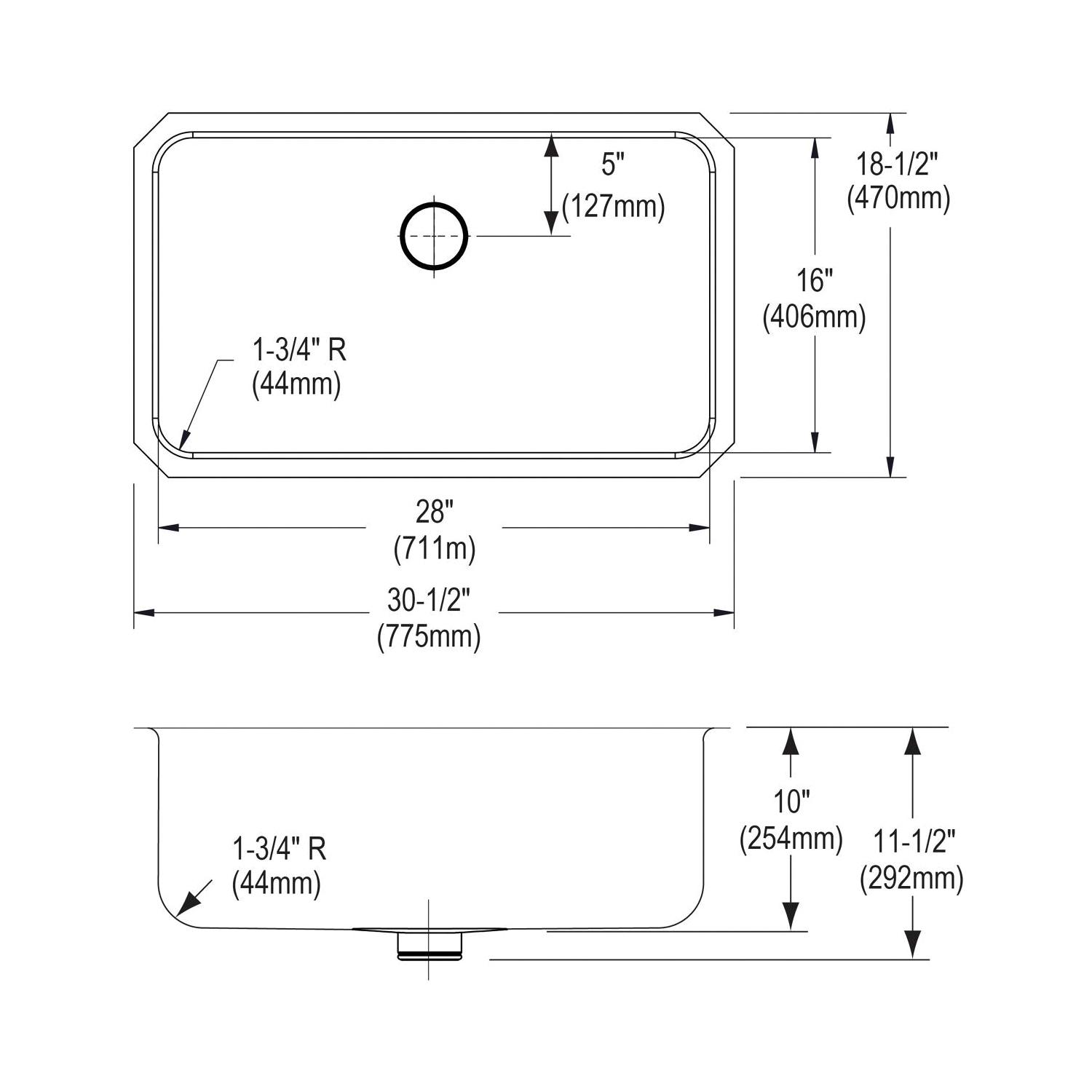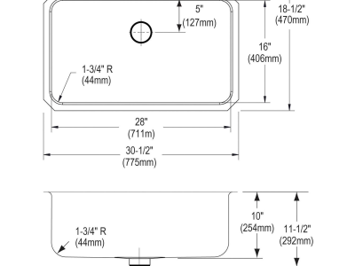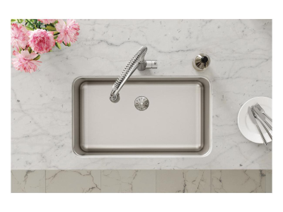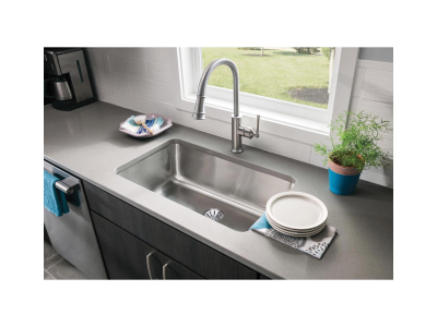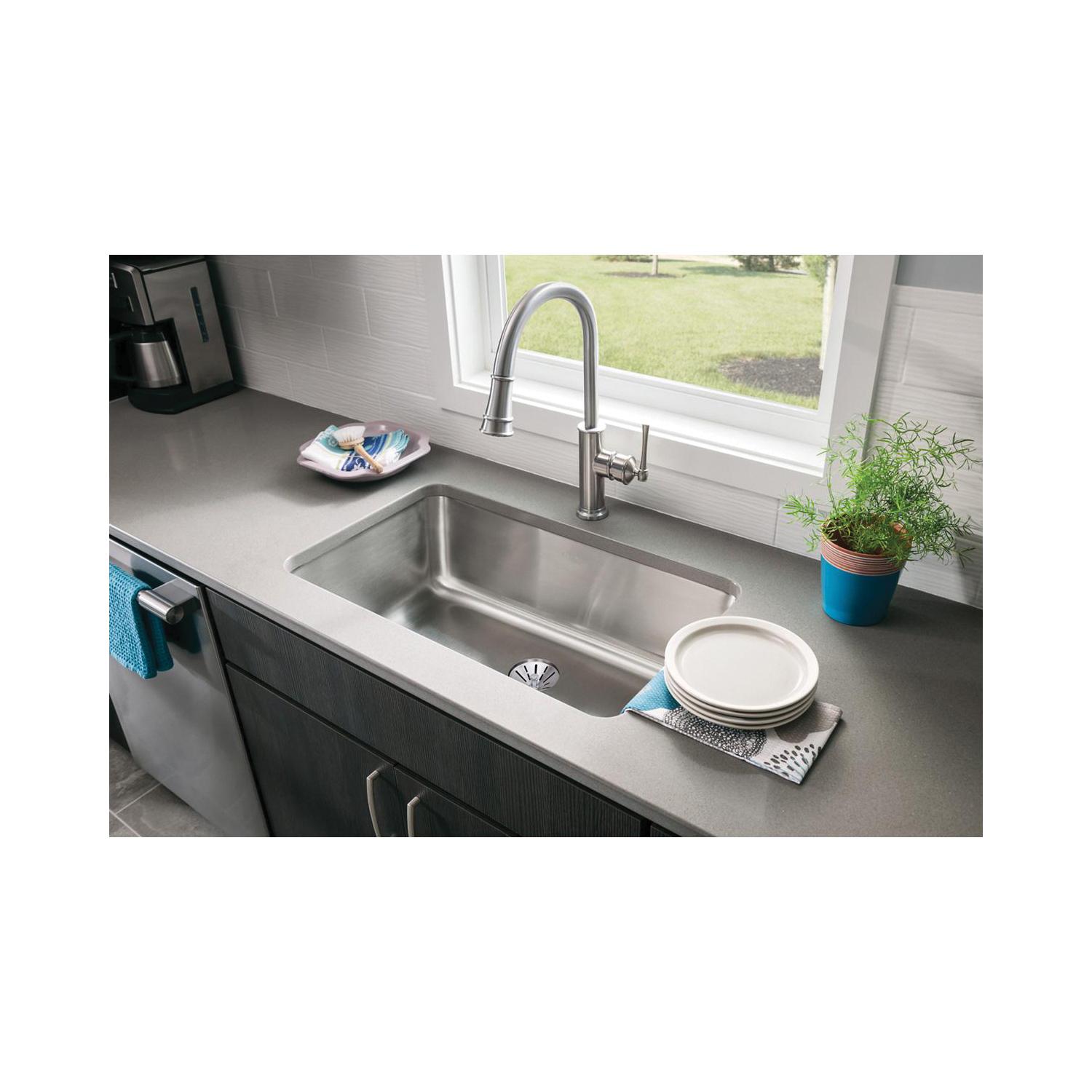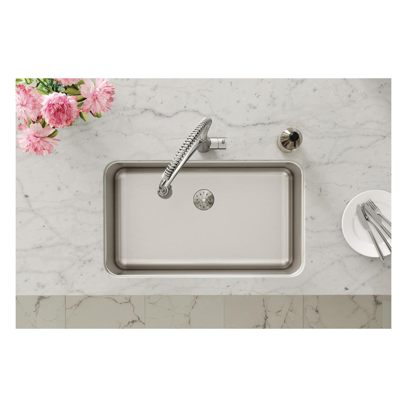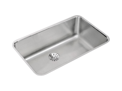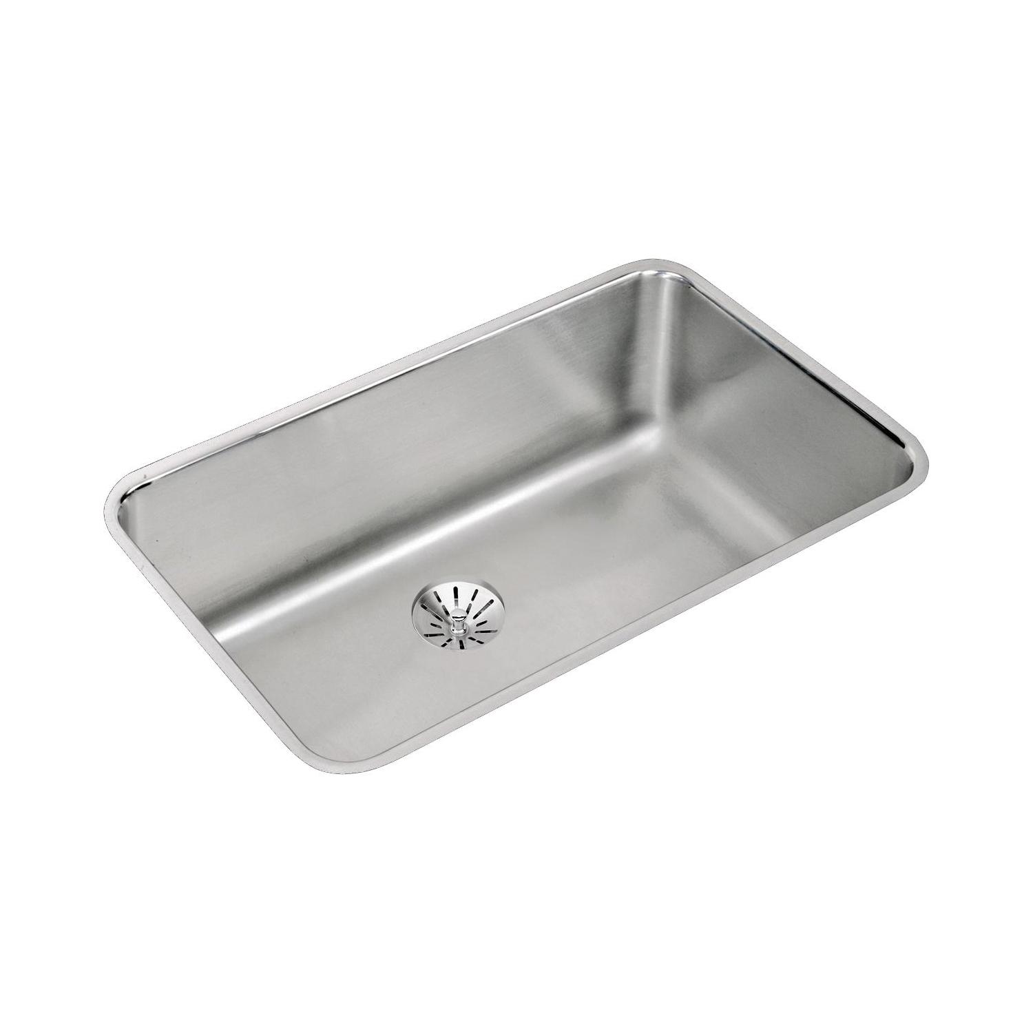 Elkay®, ELUH281610PD, Kitchen Sink, Lustertone™ Classic Collection, Rectangle Shape, 28 in Bowl Length, 16 in Bowl Width, 10 in Bowl Depth, 3-3/8 in Drain Opening, 1 Bowls, 30-1/2 in L x 18-1/2 in W x 10 in H Overall, Undermount Mounting, 18 ga 304 Stainless Steel