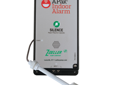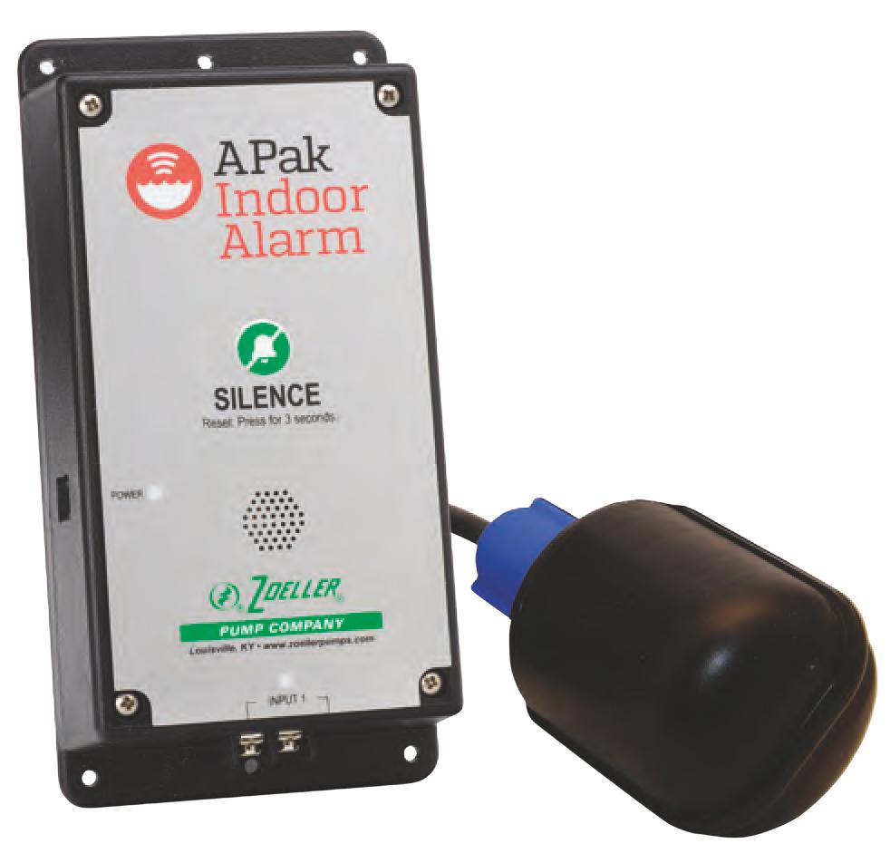 The Indoor APak® Alarm System provides an audible and visual warning in the event of high liquid in pump basin. The system comes with a 15' reed sensor-style float switch and a 6' power cord.