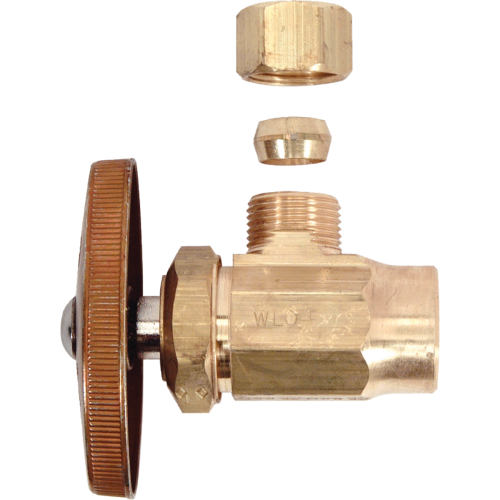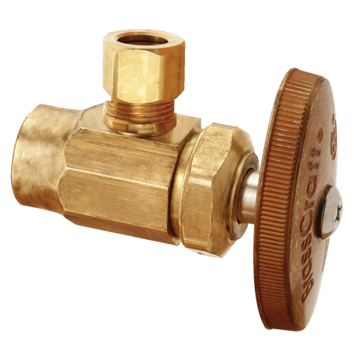 BrassCraft® R19X R Multi-Turn Angle Stop, 1/2 x 3/8 in Nominal, C x Compression, 125 psi, Brass Body, Rough Brass, Domestic