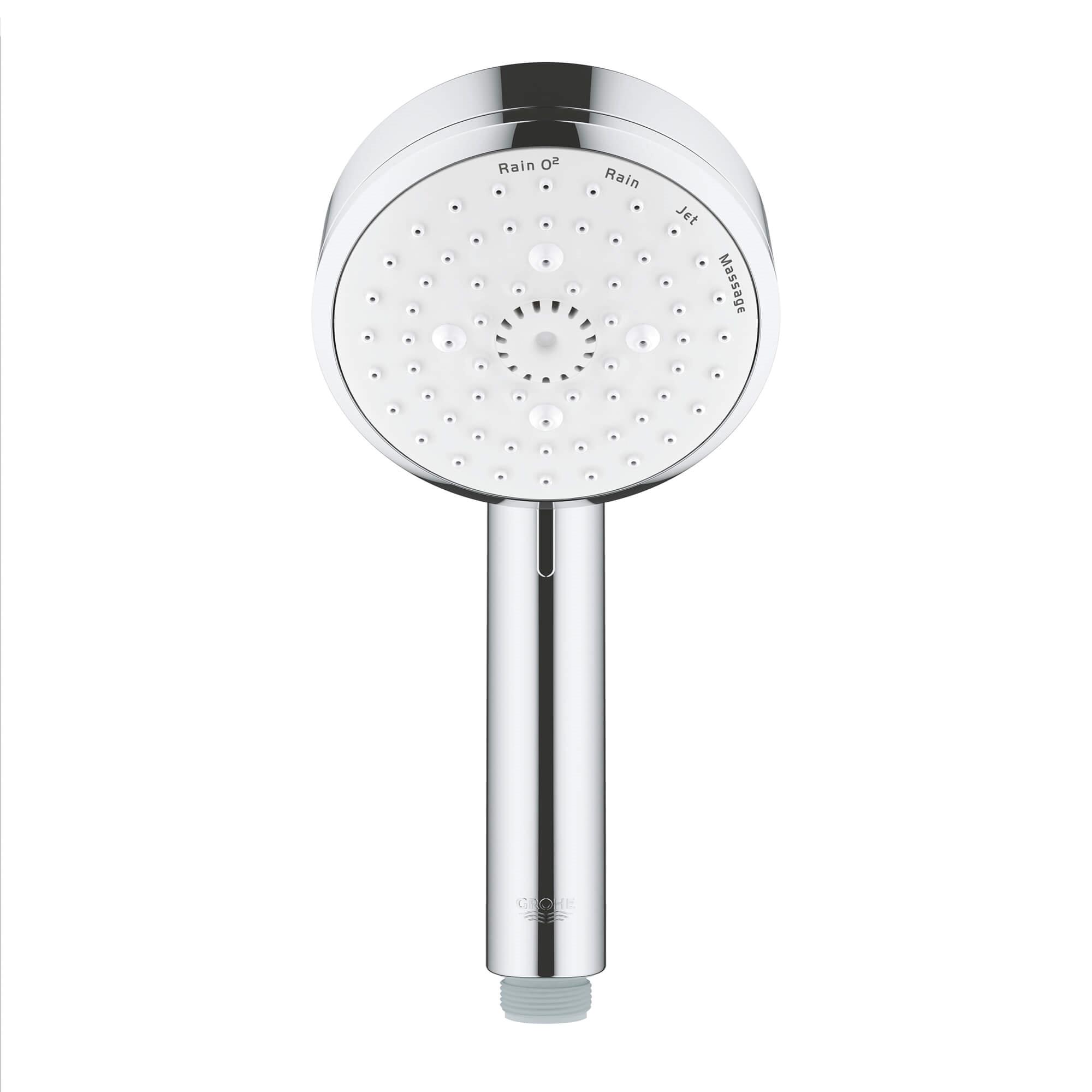 GROHE Hand Shower, New Tempesta® Cosmopolitan 100 IV Collection, 2.5 gpm Flow Rate, 1/2 in Connection, 4 Sprays, Spray Pattern: Rain O2/Rain/Massage/Jet, 15 psi Pressure, 3-15/16 in Dia Head, StarLight® Polished Chrome, Import