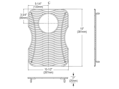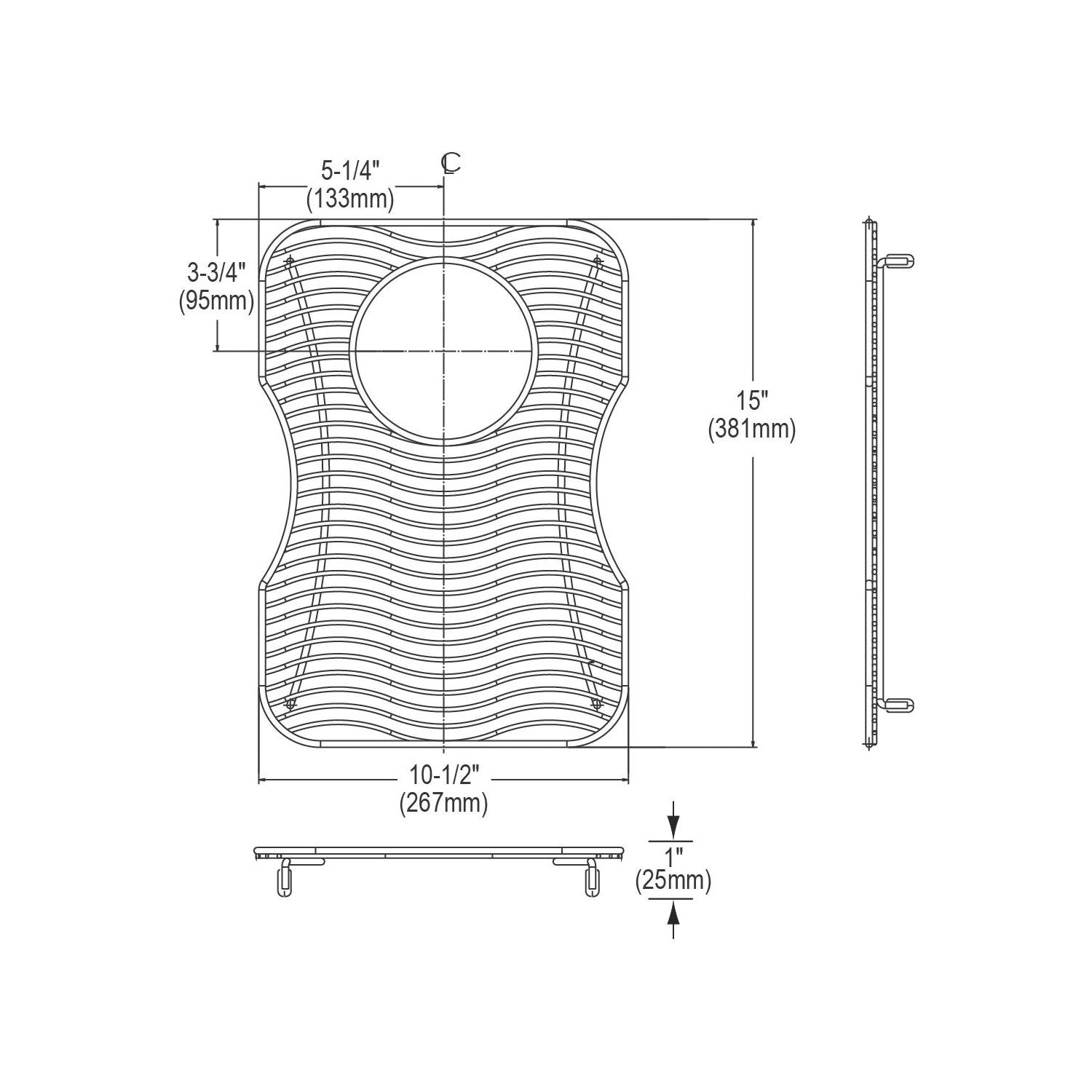 Elkay® Bottom Grid, 10-1/2 in Length, 15 in Width, 1 in Height, Stainless Steel, Import