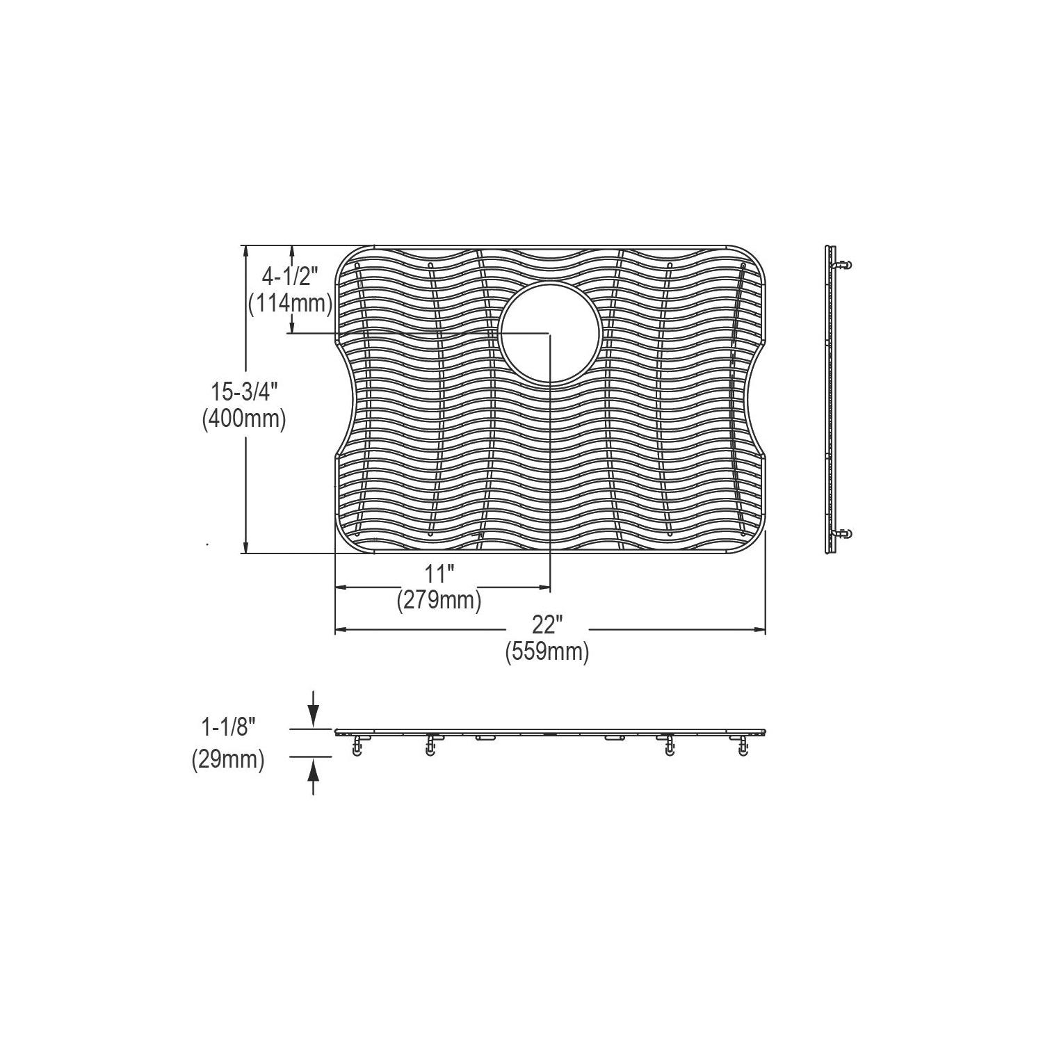 Elkay® Bottom Grid, 22 in Length, 15-3/4 in Width, 1-1/8 in Height, Stainless Steel, Import