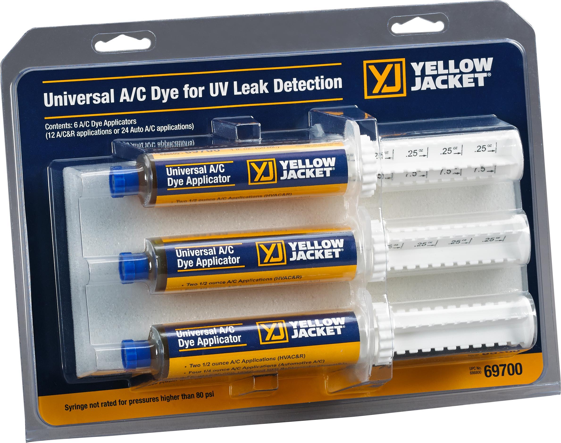 Universal disposable 1 oz. applicator for fast economical dispensing. Universal dye for all common refrigerants and oils.