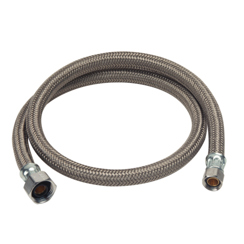 BrassCraft® Speedi Plumb® PLUS 3/8 in Compression inlet x 1/2 in Female Iron Pipe outlet flexible braided polymer water connector is corrosion resistant inside and out. Used to connect the water supply to your faucet, this connector features a high tenacity, multi-filament yarn, protected by a special polymer coating for optimum corrosion resistance and durability. On the inside, our tough PVC tubing resists attack by chlorine, chloramines and other corrosive elements. The braided polymer fibers are designed to bend freely without kinking or crimping.