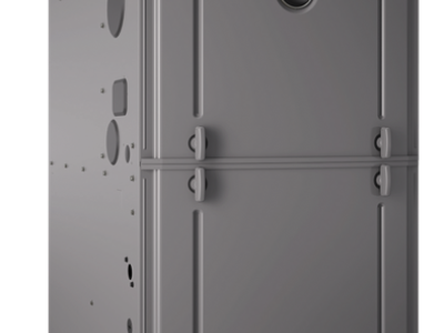 Primary heat exchanger is constructed of aluminized steel - Secondary heat exchanger is constructed of stainless steel - Heat exchangers are removable - Low profile "34 inch" design is lighter and easier to handle and leaves room for optional accessories - Left or right side gas, electric, and condensate drainage connections - Integrated control board manages all operational functions and provides hookups for humidifier and electronic air cleaner - Blower shelf design is serviceable in all furnace orientations - Pre-marked hoses - Vent with 2 inch or 3 inch PVC - Replaceable collector box - Hemmed edges on cabinet and doors - Quarter turn fasteners on access panels - Self priming condensate trap