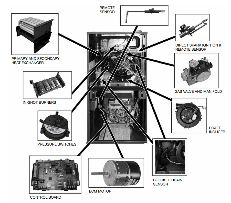 - Removable heat exchanger is constructed of aluminized steel primary, and stainless steel secondary for maximum corrosion resistance