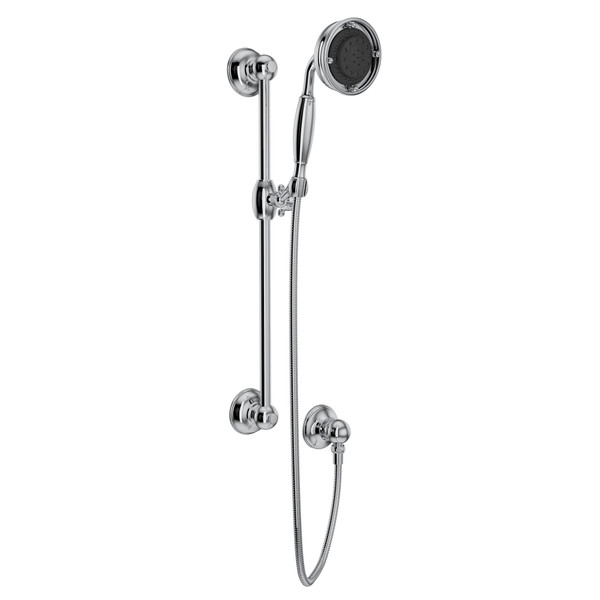 Perrin & Rowe, 1311APC, Handshower Hand Set Single-Function, Rohl Cross Collection, 2-9/16 in Shower Head Diameter, 3-Function Shower Head Patterns, 1.8 gpm Flow Rate, 59 in Hose Length, Multi-Function Spray, FNPT x Male Connection, Brass, Chrome, 21-5/8 in H Dimensions, Import
