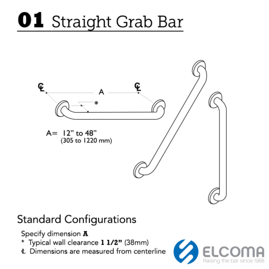 Elcoma 01-5218PT 1-1/2 inch x 18 inch Long 18 Gauge Stainless Steel Grab Bar with Peened Grip and Concealed Twist Lock Flanges