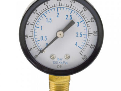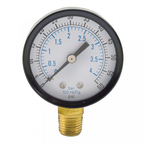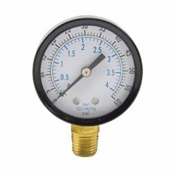 Jones Stephens™ Pressure Gauge, 60 psi, 1/4 in MNPT, 2-1/2 in Dial Diameter, 2.5-2 % Accuracy, Lower Mount, Steel Case, 3-1/4 in H