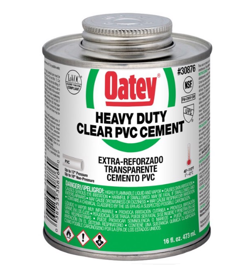Oatey 30876 Heavy Duty Body Clear PVC Cement - 16 ounce