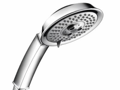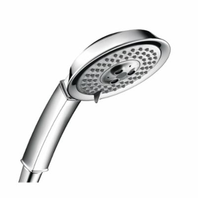 Hansgrohe 3-Jet Hand Shower, Raindance C 100 AIR Collection, 2.5 gpm Flow Rate, 1/2 in Connection, 3 Sprays, Spray Pattern: BalanceAir/RainAir/WhirlAir, 1/2 in Hose, 4-5/8 in Dia Head, Brass, Polished Chrome
