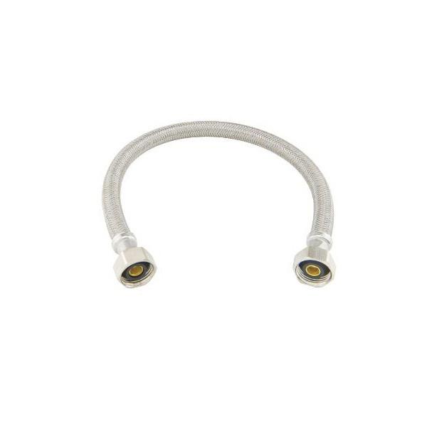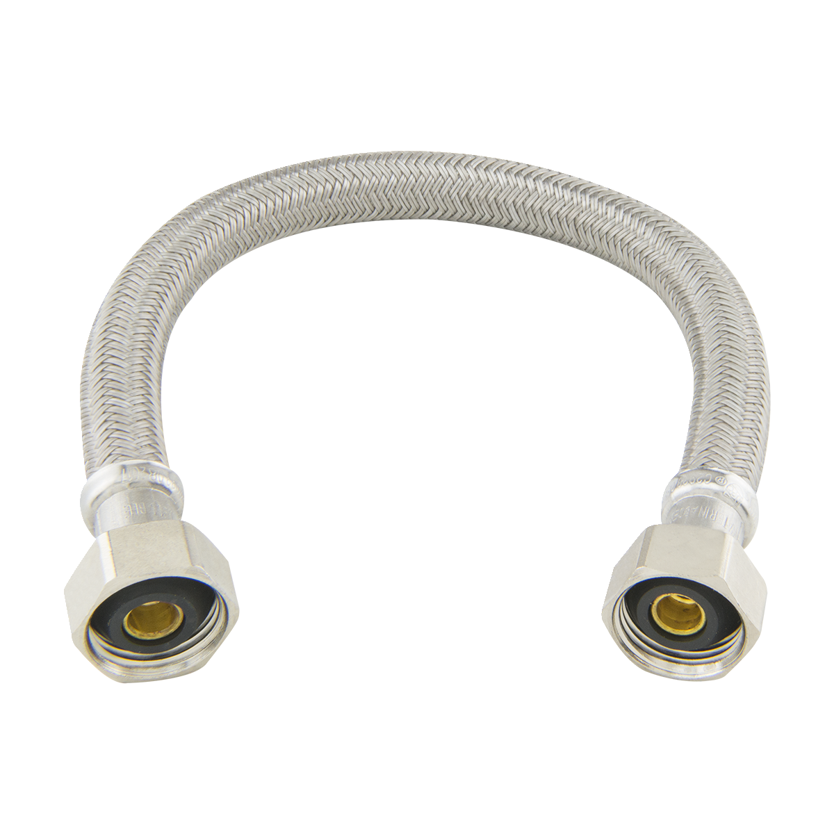 BrassCraft® Speedi Plumb® PLUS 1/2 in Female Iron Pipe inlet x 1/2 in Female Iron Pipe outlet braided polymer water connector is corrosion resistant inside and out. Used to connect the water supply to your faucet, this connector features a high tenacity, multi-filament yarn, protected by a special polymer coating for optimum corrosion resistance and durability. On the inside, our tough PVC tubing resists attack by chlorine, chloramines and other corrosive elements. The braided polymer fibers are designed to bend freely without kinking or crimping.