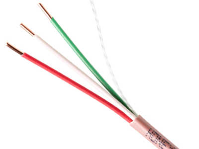 Solid bare copper 18 gauge wire with 3 conducters with Red, White and Green jackets - 500 foot coil - UL listed
