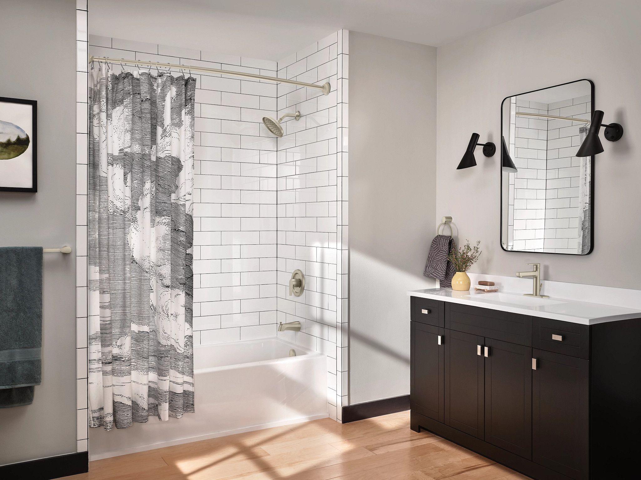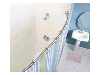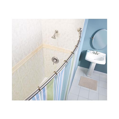 Enhance the appearance of your bathroom by adding a colorful shower curtain with the Creative Specialties by Moen Adjustable Length Curved Shower Rod. Made of metal, this shower rod is sturdy and long lasting. Available in multiple finishes, you can choos