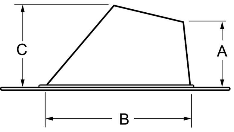 - Dimension "A" is 3-1/4" - Dimension "B" is 7-3/8" - Dimension "C" is 4-1/8"