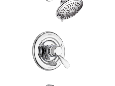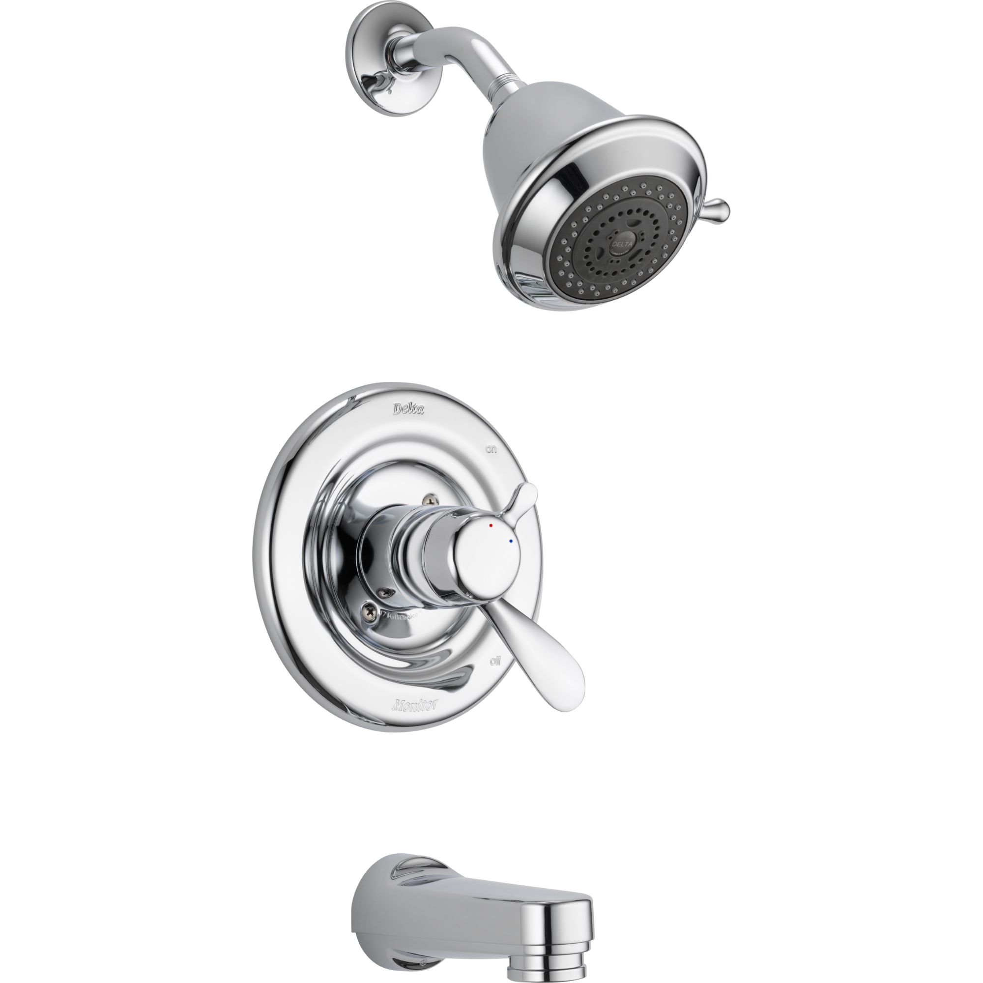 DELTA® Tub and Shower Trim, Series: Monitor® 17, Classic Collection, 1.75 gpm Shower Flow Rate, Pull-Down Diverter Spout, 5-1/4 in Spout Reach, 1 Handles, Lever Handle, 7-1/2 in Dia Trim, 1222 Pressure Balanced, Hand Shower: No, Spray Pattern: Full/Massage/Soft Drench, 3 Spray Functions, Wall Mounting, For Use With: For use with MultiChoice® Universal Rough-In Valve Body(R10000 Series), Solid Brass, Polished Chrome