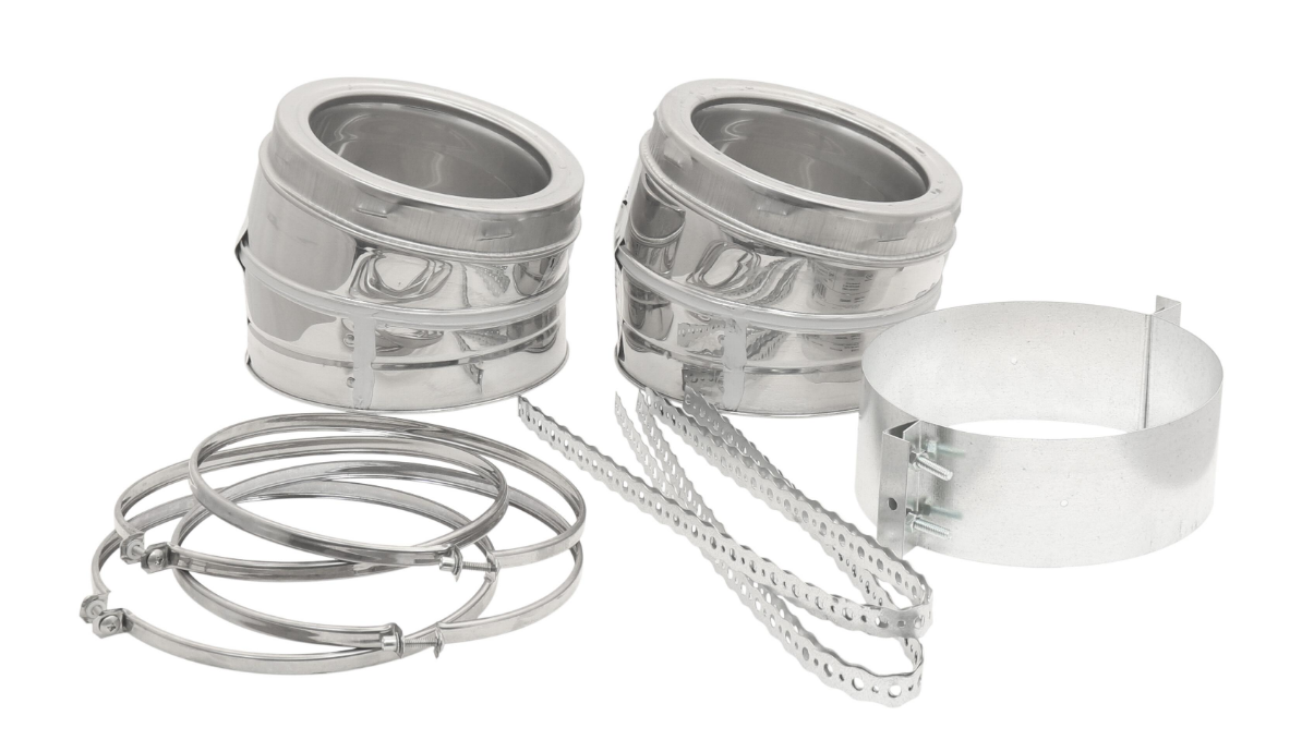 - Includes: 2 - 15 Degree elbows, 2 - locking bands, 1 - elbow support, all hardware