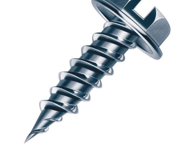 A unique thread design and quality controlled manufacture spell the Zip-In difference. Zip-In's sophisticated heat treat process allows the screw to taper to a fine, sharp point without sacrificing critical point strength. A single starting thread is formed down to the very tip of the point and is the source of Zip-In's penetrating power. A second thread above the point engages after initial penetration and drills in the screw double fast. Zip-In screws are faster driving, with a greater capacity for fastening heavier gas of sheet metal than any other self-piercing type.