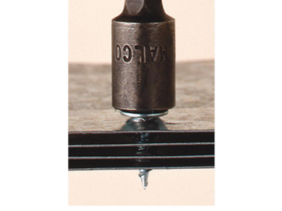 A unique thread design and quality controlled manufacture spell the Zip-In difference. Zip-In's sophisticated heat treat process allows the screw to taper to a fine, sharp point without sacrificing critical point strength. A single starting thread is formed down to the very tip of the point and is the source of Zip-In's penetrating power. A second thread above the point engages after initial penetration and drills in the screw double fast. Zip-In screws are faster driving, with a greater capacity for fastening heavier gas of sheet metal than any other self-piercing type.