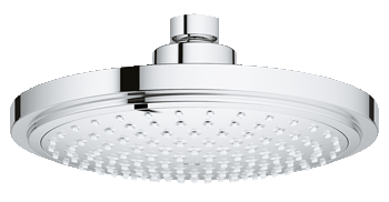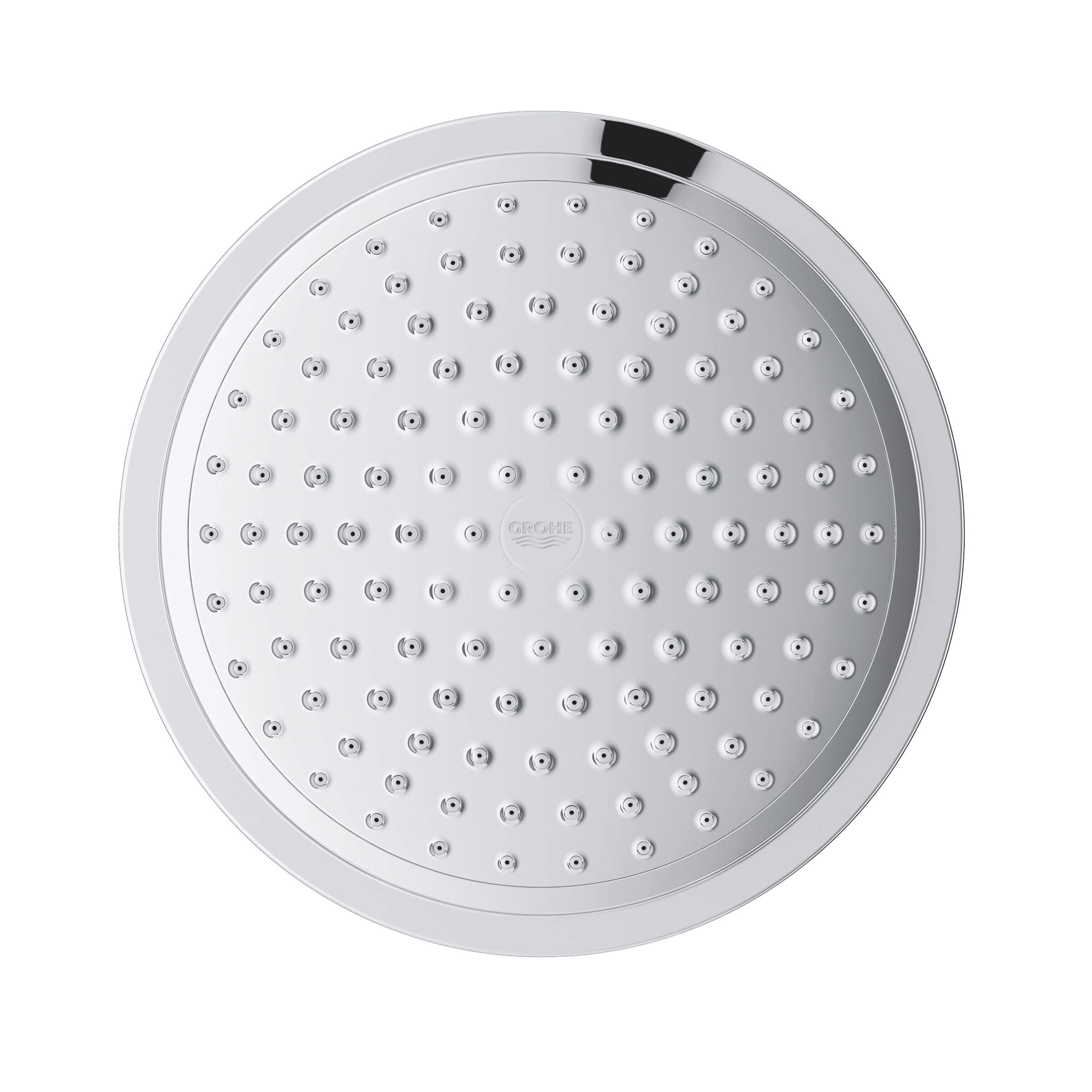 GROHE Shower Head, Euphoria Cosmopolitan 180, 2.5 gpm, 1/2 in Connection, Round Shape, Number of Sprays: 1, Spray Pattern: Rain, 7-1/16 in Dia Head, 2-7/8 in Overall Height, ABS, Polished Chrome, Import