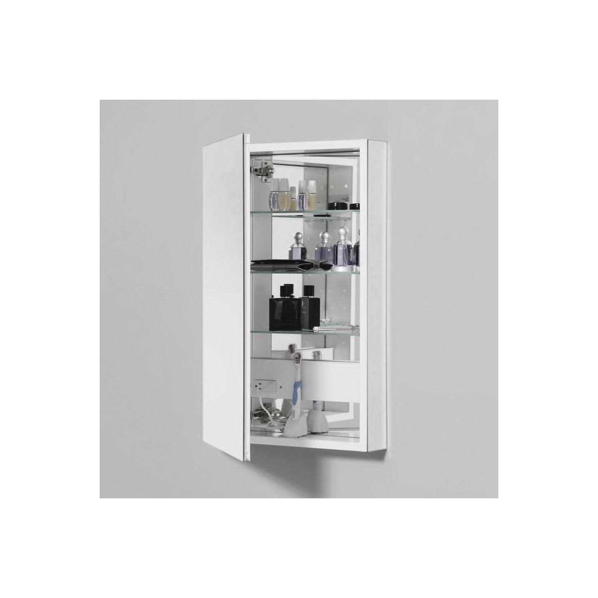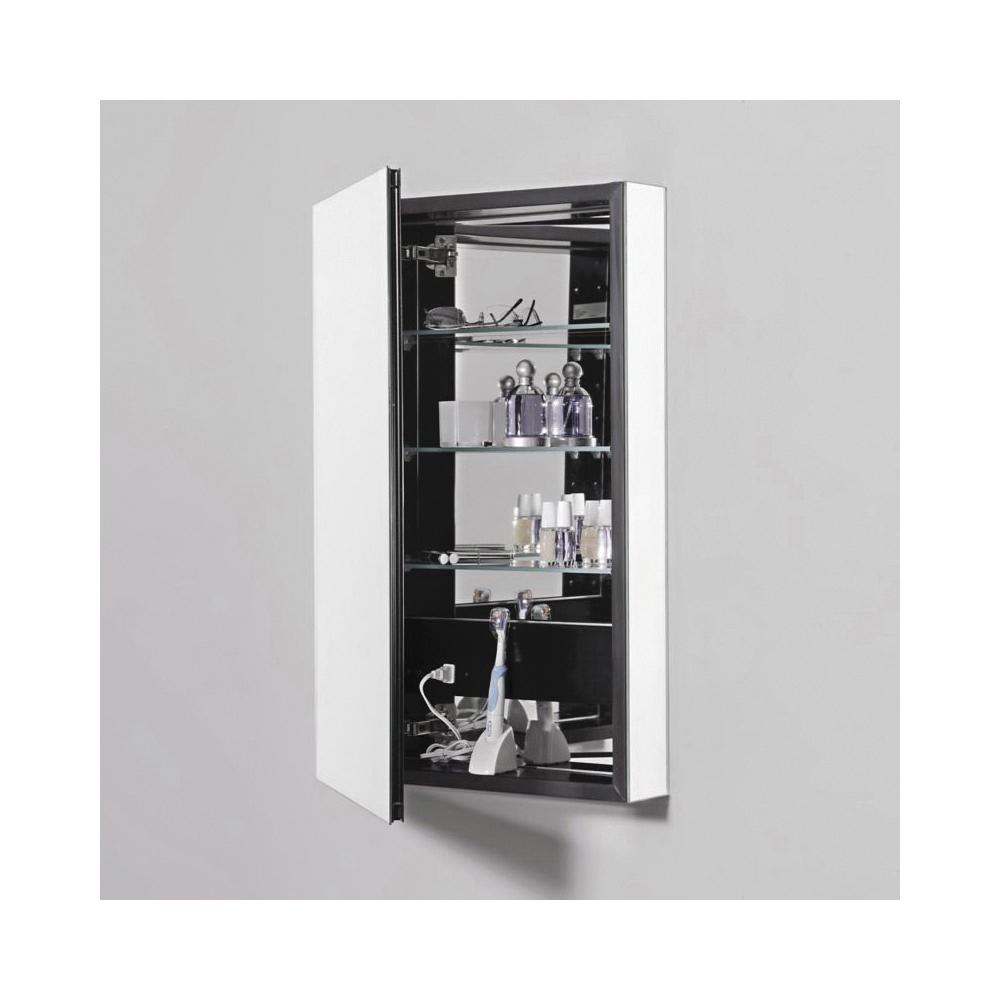 Robern® Medicine Cabinet, Flat Top, Series: PLM, 24 in Overall Width, 30 in Overall Height, Aluminum, White, 3 Shelves