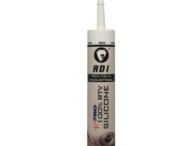 Red Devil® RD PRO® RTV Silicone Sealant, Industrial Grade, Cartridge Container, 10.1 oz Container, Proprietary Siloxane Blend Base, Composition: Hydroxy Terminated Dimethylsiloxane, Non-Hazardous Ingredients Amorphous Silica, Polydimethyl Siloxane Methyl Triacetoxysilane Titanium Dioxide, Ethyltriacetoxysilane, Smooth Paste Form, 20 min Tack-Free Drying, 24 hr Curing, White, -60 to 400 deg F, 0.96 to 1.08 Specific Gravity, <30 g/L VOC, Flammability: 1, Applicable Materials: Ceramic Tile, Most Metal, Plastic, Rubbers, Non-Oily Wood, Porcelain, Glass, Marble, Fiberglass, Painted Surfaces