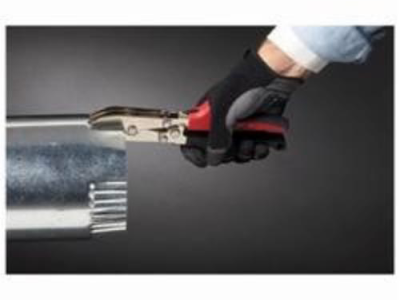 Use the Malco C5R Crimper to downsize stove pipe and round metal duct to create a male connection for joining sections. The five blades of this versatile job-site hand tool produce a 1-5/8 in (41.28 mm) long, shallow, double crimp that replicates factory indentations and ensures a tight fitting, leak-proof connection. The connection is also more self-supporting during installation. A handle closing stop maintains a consistent crimp. Hardened all-steel construction and a nickel chrome finish ensure long service life. The Malco C5R Crimper also features ergonomic Redline Handle technology. An Engineered handle opening compliments the natural power stroke of any user's hand and maximizes the powerful 7:1 mechanical advantage of compound-leverage head to handle linkage. Comfortable handle grip contours, a non-slip grip insert, spring handle actuation and a thumb-operated handle latch ensure a natural fit and feel for comfortable one hand operation anywhere on the job.